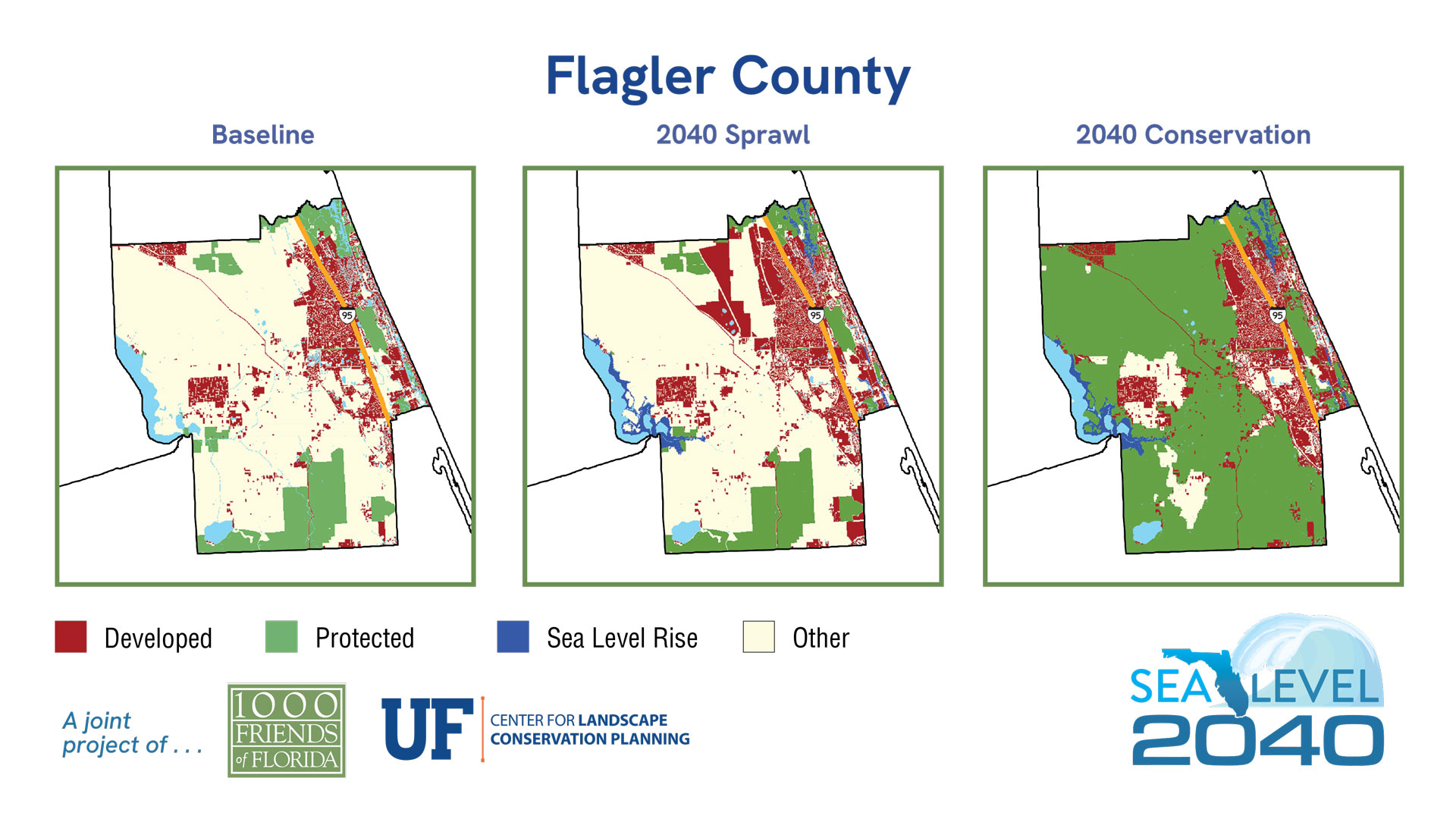 | 2019 | % of Total Acreage | Sprawl 2040 | % of Total Acreage | Conservation 2040 | % of Total Acreage | |