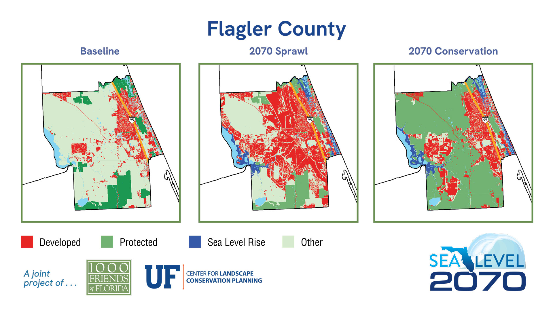 | 2019 | % of Total Acreage | Sprawl 2070 | % of Total Acreage | Conservation 2070 | % of Total Acreage | |