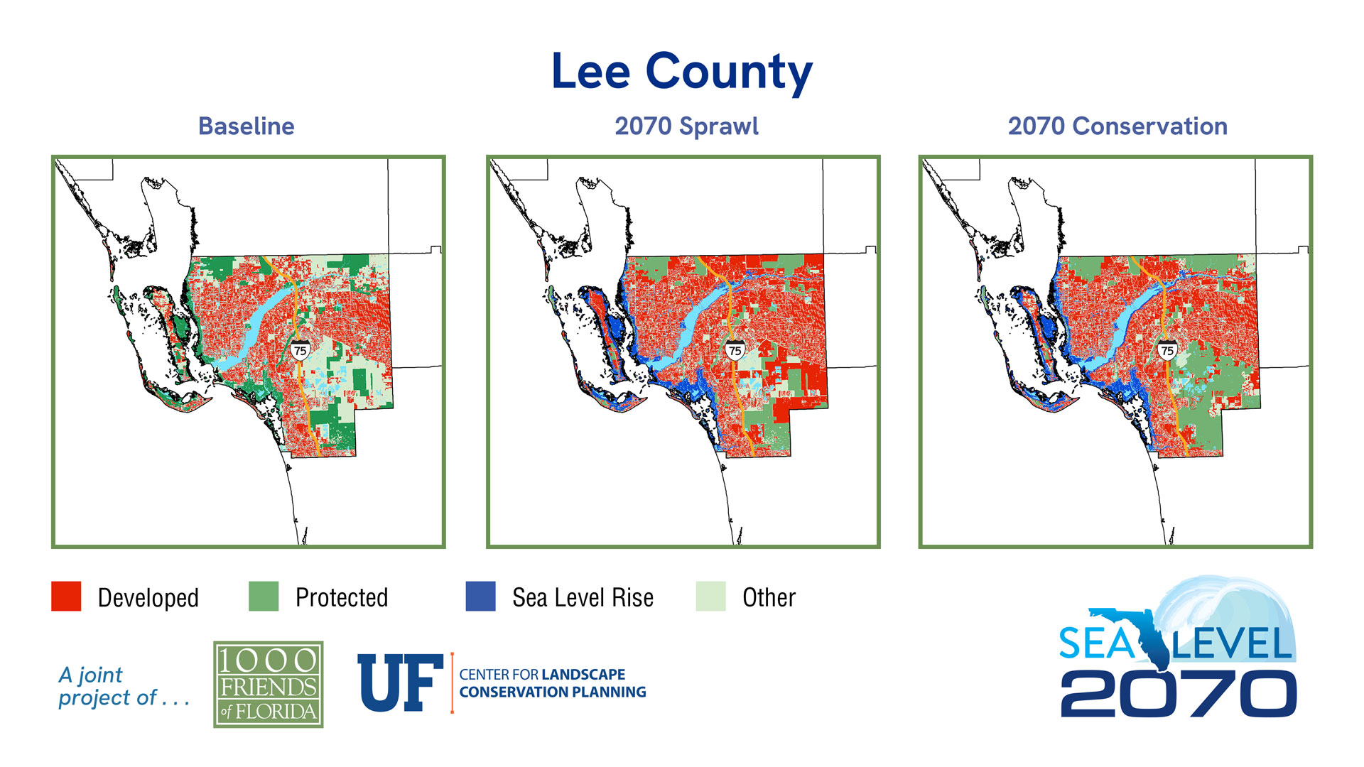 2019 | % of Total Acreage | Sprawl 2070 | % of Total Acreage | Conservation 2070 | % of Total Acreage | |