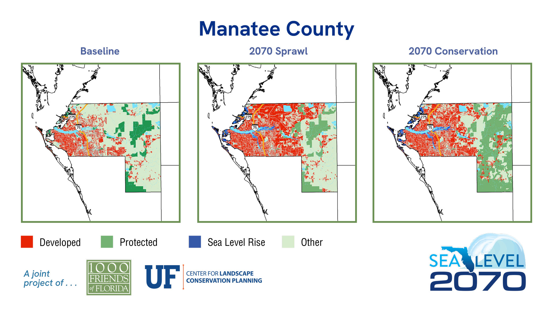 | 2019 | % of Total Acreage | Sprawl 2070 | % of Total Acreage | Conservation 2070 | % of Total Acreage | |